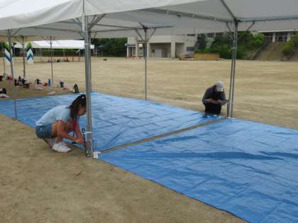 PTAの役員さんが、明日の体育大会の準備を手伝ってくださいました。