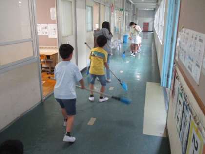 6年生の優しいサポートで1年生の掃除も上達しています。