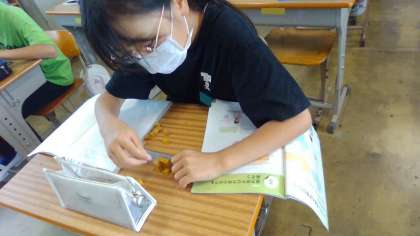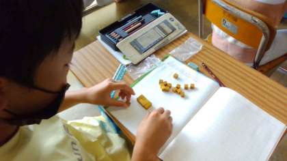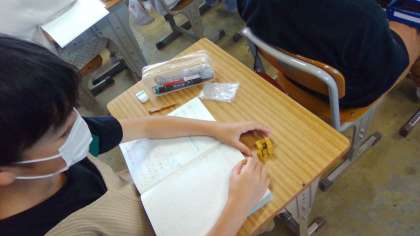 一辺の長さが1cmの立方体の積み木を使って、体積の学習をしました。