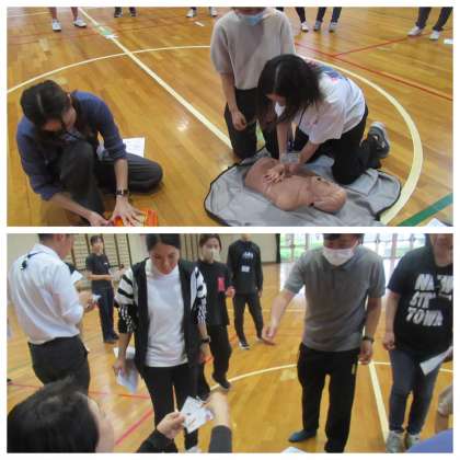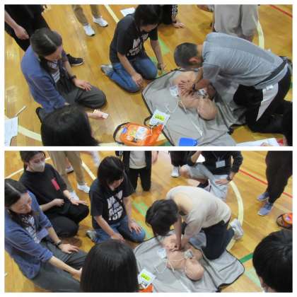 その間、職員が交代で「胸骨圧迫」やAEDを使って心肺蘇生を行いました。