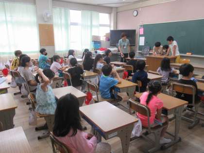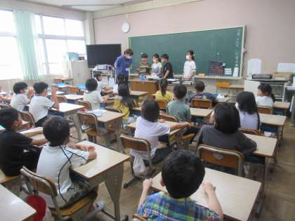 それぞれのグループで、6年生が中心となって一年間一緒に活動するみんなで自己紹介をしていました。