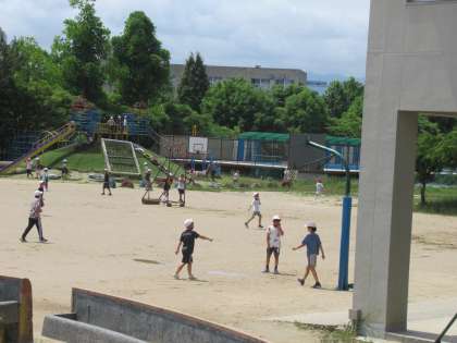 晴れた日の運動場は、子どもたちでいっぱいです!