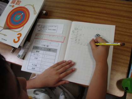 必要なデータを収集したり、分析したりするための基礎を学んでいます。今日は、クラスのみんなの好きなスポーツをテーマにし、競技ごとの人数の整理の仕方を学んでいます。