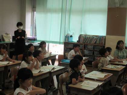 国語の「あいうえおのうた」を楽しく読もうというめあてのもと、いろいろな読み方を工夫をして読んでいました。