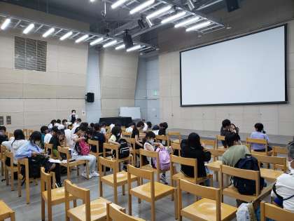 これから映画の上映があります。館内ではみんな、戦時中の展示物を見て、学びを深めています。