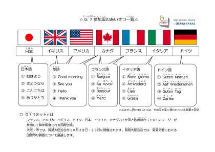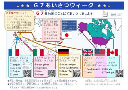 G7大阪・堺貿易大臣会合を契機とした国際感覚を醸成する取組の一環として、「G7あいさつウィーク」を実施します。