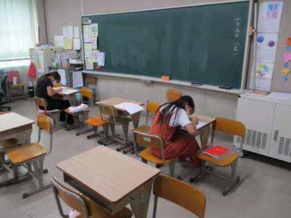 教室に来たら、黙々と課題に取り組んでいます。