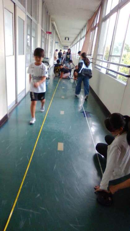 平均の勉強をしています。自分の歩幅は何cmなのかを調べました。10歩の長さの平均を求め、それを10で割って求めました。