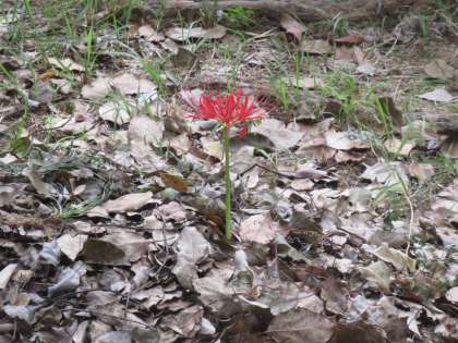 学校の中庭に一本だけ彼岸花が咲いていました。