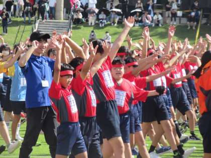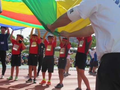 開会式では、3000人の6年生たちと一緒に「堺っ子体操」を行ったり、バルーンをしたりしました。