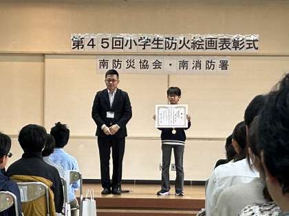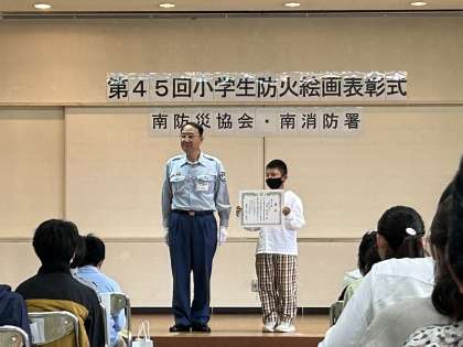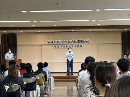 本日南図書館で、第45回小学生防火絵画表彰式が行われました。