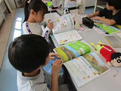 2組は図書の時間です。思い思いの本を選び、読書をしていました。