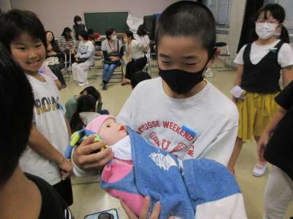 赤ちゃんのだっこ体験をしました。ドキドキしたりうれしそうにしたりしながらだっこをしていました。
