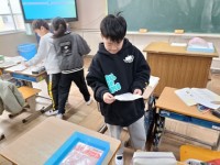 1年生の入学式に向けて、パンジーの花を植えていた2年生。