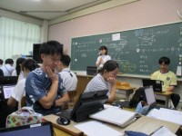子どもたちが職員の付き添いの元、下校した後に、研究授業の討議会を行いました。①「...