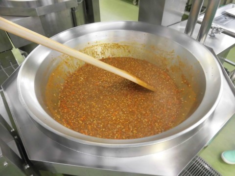 ドライカレーの具には、ひき肉とひきわり大豆、にんじん、たまねぎが入っています。