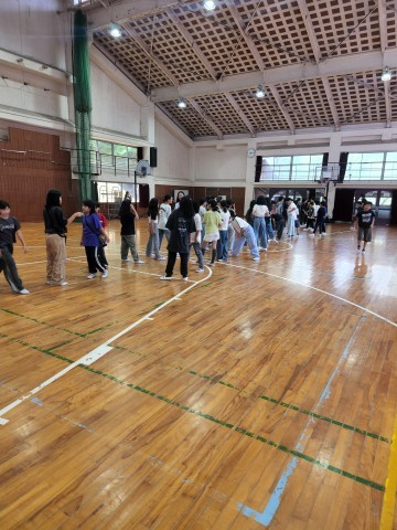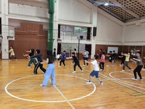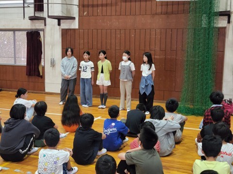 朝のつどいでは、実行委員の挨拶、堺っ子体操、タコとタイゲームをしました。