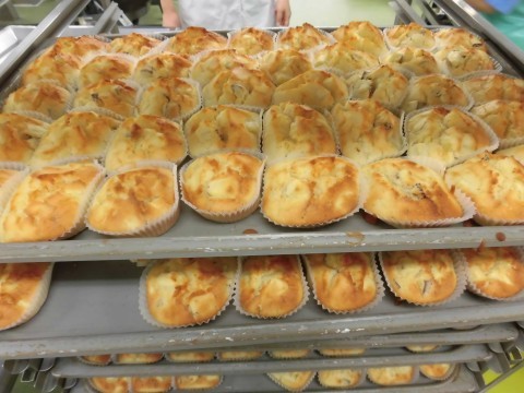 献立は、ミニコッペパン、ビーンズシチュー、コーンキャベツ、さつまいもケーキ、牛乳です。