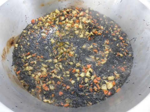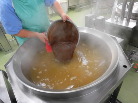 いつもの給食にでているみそ汁よりも濃い色をしています。