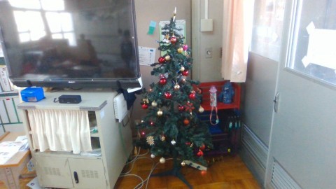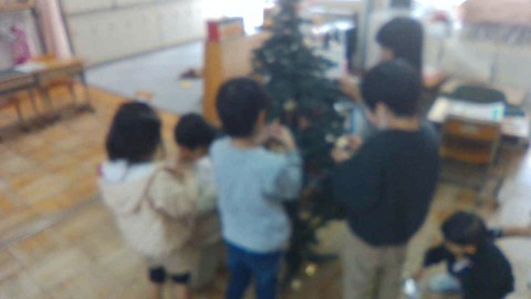 「協働」の学びとしてみんなでクリスマスツリーを組み立てました。