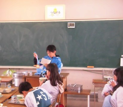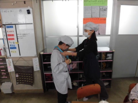 給食委員会のメンバーが,給食時間に各クラスへ完食メダルを届けました。