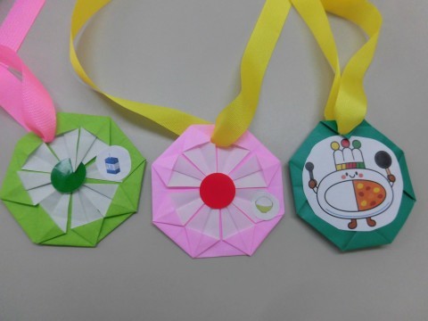この完食メダルは,今年の給食委員会がしたいことの1つで,みんなで協力して作りました。