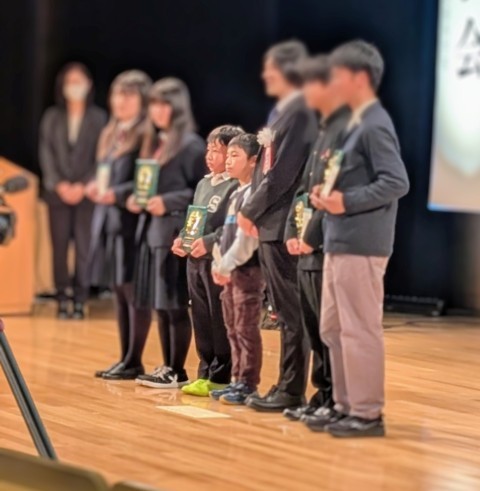 代表の2人,4年生,新檜尾台小学校みんなでもらった奨励賞です。
