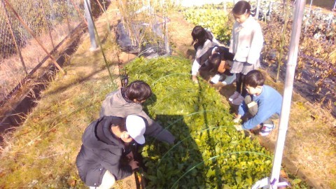 ほうれん草の収穫をしました。みんな収穫に夢中でした。