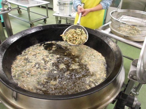 かきあげには旬の春菊が入っていて、彩りがきれいでした。