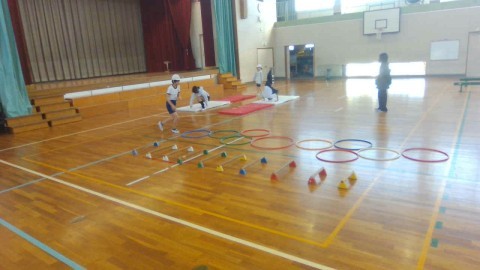 準備運動とストレッチをしてからランニングを行い,最後にサーキット運動をしました。
