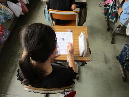 4年生の算数の授業では,分度器を使って角度を測るなどしていました。
