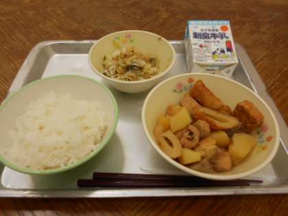 ♪今日の献立は、ごはん・関東煮・いそのサラダ・牛乳でした。