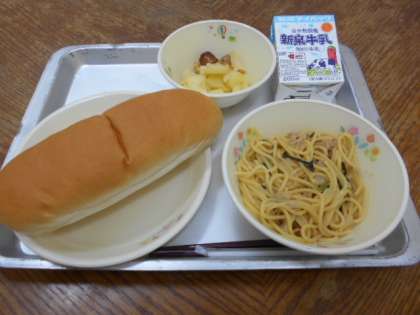♪今日の献立は、コッペパン・和風スパゲティ・ポテトウインナー・牛乳でした。