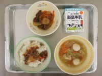 ♪今日の献立は、ごはん・わかめスープ・ヤンニョムチキン・牛乳でした。
