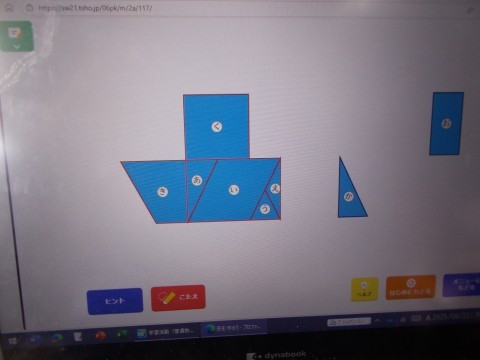 今日は,様々な三角や四角を使って,船など,いろいろな物を形作っていました。