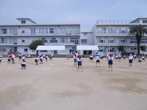 運動場で,ダンスの練習をしています。