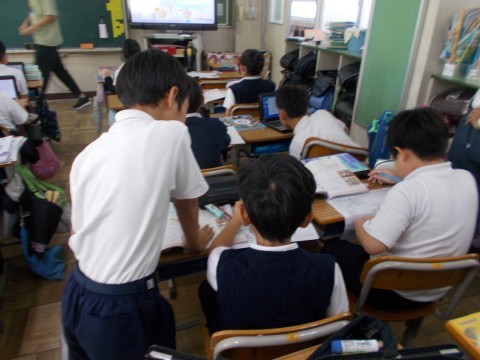 生産量,金額,輸入先など,資料を基に,自分たちが調べたことからさらに発展できるように,共有していました。