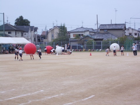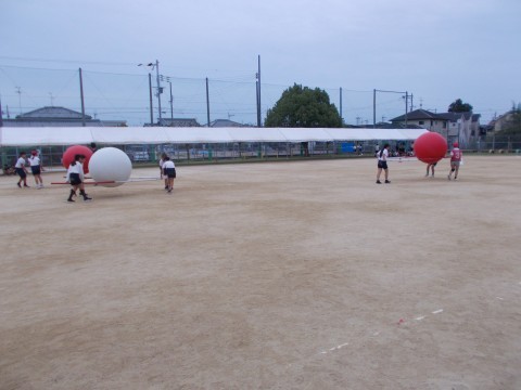 大玉を棒で協力して運ぶのですが,苦戦しながらも頑張っていました。