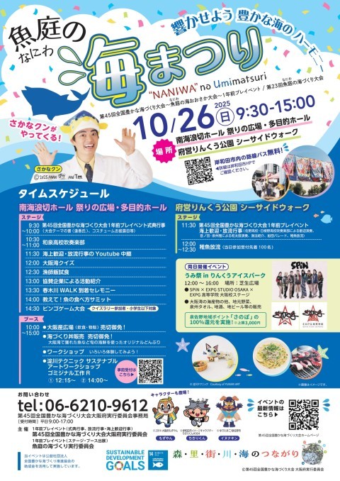 「第45回全国豊かな海づくり大会~魚庭(なにわ)の海おおさか大会~1年前プレイベント/ 第23回魚庭の海づくり大会」開催案内