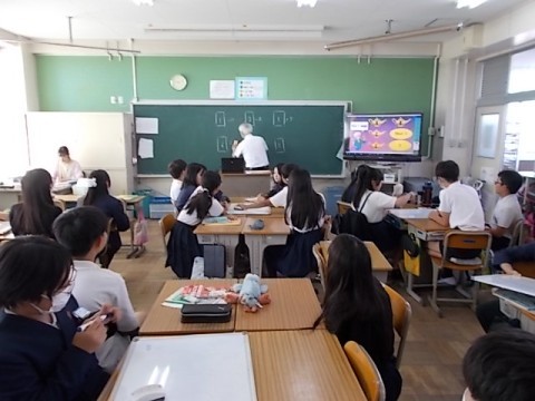 今回は班対抗戦で行い,班のメンバーで協力をして,英語のクイズに答えていました。