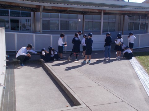 太陽光を反射させ,光の進み方をいろいろと試していました。
