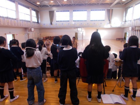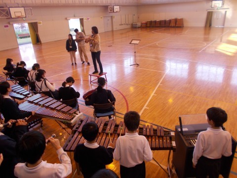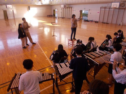 並び方を調整しながら,楽器の場所を調整しながら,本番に向けて練習を頑張っています。