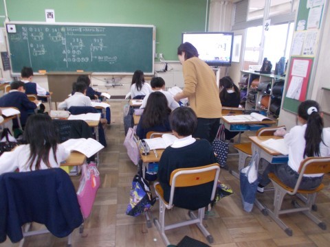 繰り上がりのあるかけ算なので,繰り上がりに気を付けながら計算をしています。
