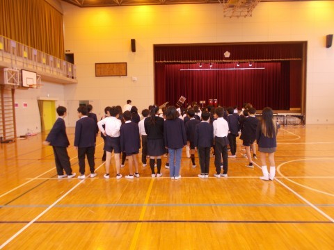 今日は,座席から入場して,演奏,退場の練習をしました。