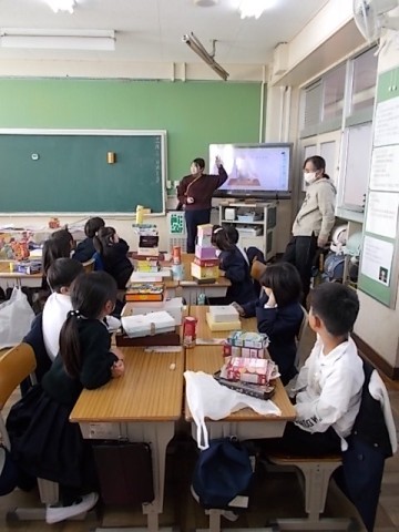 四角い箱の形,さいころの形,筒の形等,様々な形に分類をしていました。