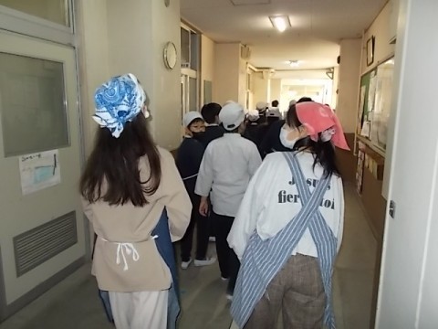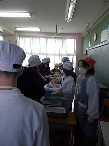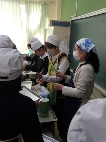 配膳も一緒にして,子どもたちが配膳の方法を一生懸命に伝えていました。