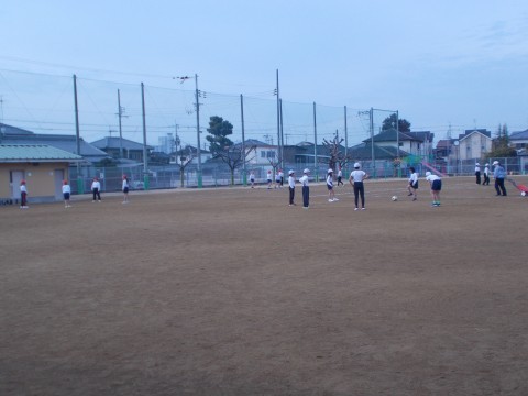 試合前に,チームでパスの練習をしています。