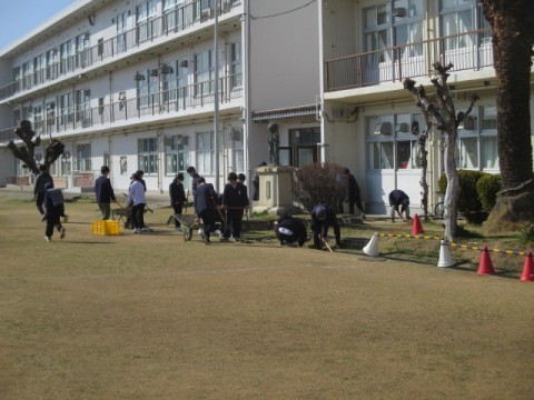 6年間通った学校に,感謝の気持ちを込めて奉仕作業をしていました。