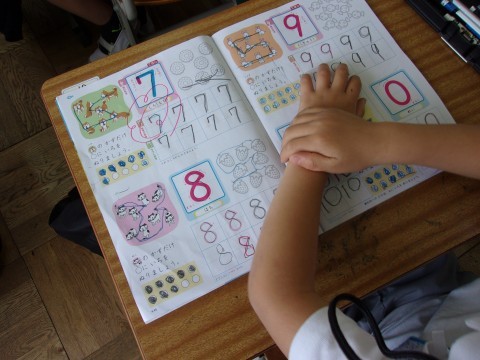 「あさのおひさま」という音読の練習をしたり,数字の書き方を学習したりしています。