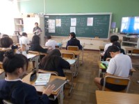 クイズ形式で,外国語の学習をすすめていました。今回は班対抗戦で行い,班のメンバー...